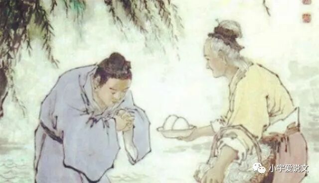 失去了双亲的韩信,被孤独悲伤所占据。伤心归伤心,肚子还是不能饿着,为了填饱肚子,他打算到河边去钓鱼。不过,一直钓了很久都没有一条鱼上钩,饥饿使他面露痛苦之色。这时,一位老妇人看到他这番模样,心中有些不忍,便把自己带来的饭菜给他分了一些。这之后,韩信便每日都到河边来,因为到这来,有人愿意给他分饭吃。虽然这样做很失面子,但是他顾不上了,只要填饱肚子就够了。就这样过了几十天,一次韩信突然心中有感,说要报答对方,等到他发迹之后一定让她享福。不料,老妇人反而生气了,说你也是一个男子汉了,怎么说话都不经过大脑呢?你看看你现在是什么样子,整天什么也不干,如果我不帮你,你连饭都没得吃。再者说我帮你只是看你可怜,并没有期望你能报答我。