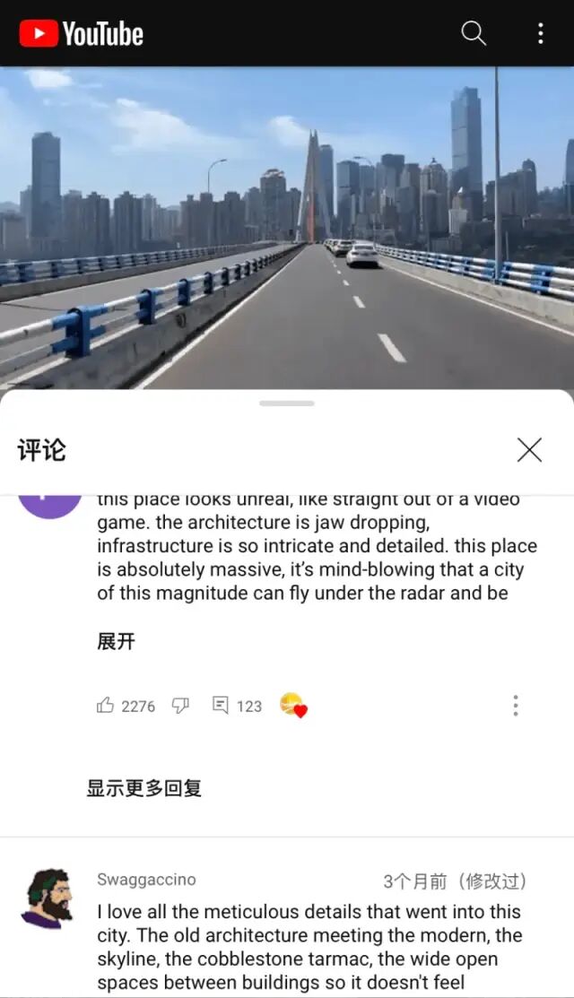 重庆街景外网获得一百多万观看,世界各国网友大量彩虹屁现场!