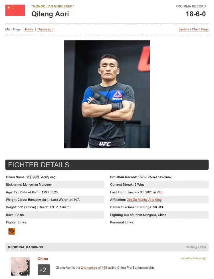 两年前,傲日曾拿到过武林笼中对雏量级(61KG)冠军腰带,随后便被选拔进入UFC上海精英训练中心训练,在那里他的实力也取得了长足的进步,还被评为精英训练中心第一季的最快进步奖,训练中心的体能主管也在纪录中说到傲日其楞是自己最喜欢的选手。