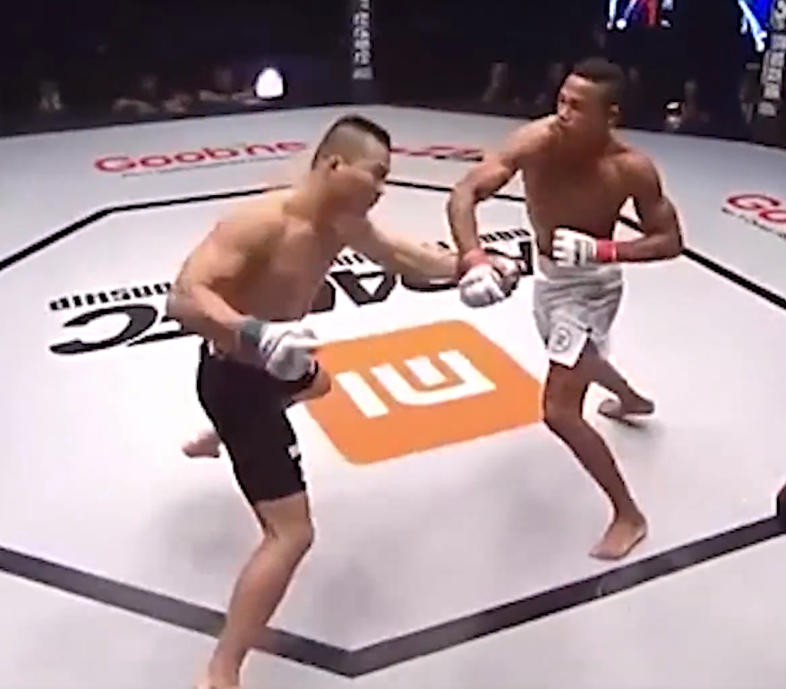 比赛开始之前,双方拳手剑拔弩张,一脸谁也不服谁的样子。比赛开始后,蓝方拳手(黑裤)率先发动攻击,结果被红方(白裤)躲过。