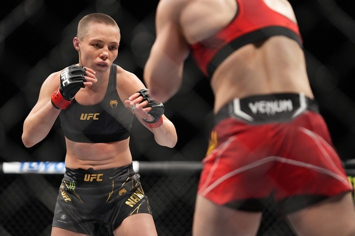 比赛开始后双方相互试探,张伟丽腿法主动进攻,双方互有击中,张伟丽多次将罗斯摔倒在地压制但未能完成降伏。