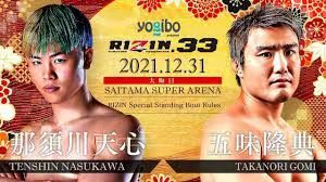 12月31日在日本埼玉县结束的RIZIN雷神33期比赛中,不败“格斗神童”那须川天心(Nasukawa)与前PRIDE轻量级冠军“天下无双火玉童”五味隆典(Takanori Gomi)在“特别拳击规则”比赛中打成平局。