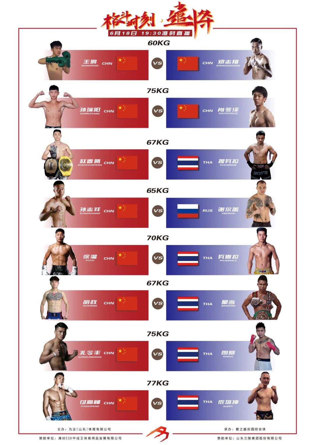 就在今晚19点30分,格斗时刻·遣将【中泰王者对抗赛】将拉开战幕,作为国内最新顶级格斗赛事的揭幕之战,此次比赛阵容也极具看点。
