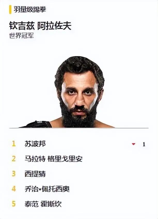 除了升级外,阿拉佐夫还肩负着卫冕羽量级踢拳世界冠军金腰带的职责。在阿拉佐夫的职业生涯中,虽然已经成功复仇了西提猜(Sitthichai),但羽量级还有多位竞争者曾经击败过阿拉佐夫。
