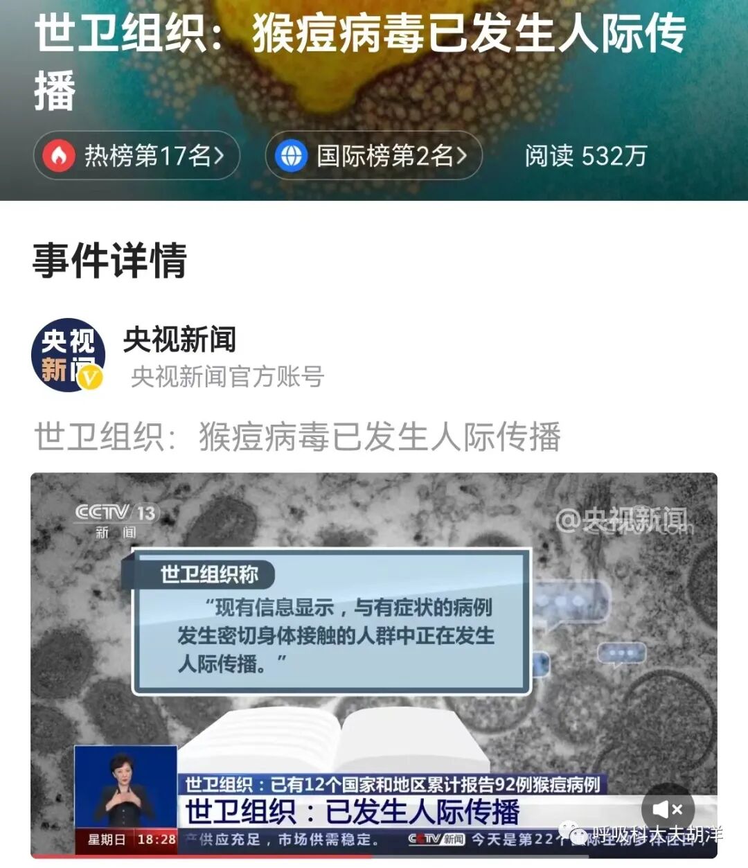 当地时间21日,世卫组织称猴痘病毒已经开始发生人际传播,听到这个新闻很多人纳闷,我们国内那么多媒体都在科普猴痘在欧美发现多例感染者,难道不是人际传播来的吗?世卫组织也太后知后觉了吧!其实世卫组织发布的信息另有深意。