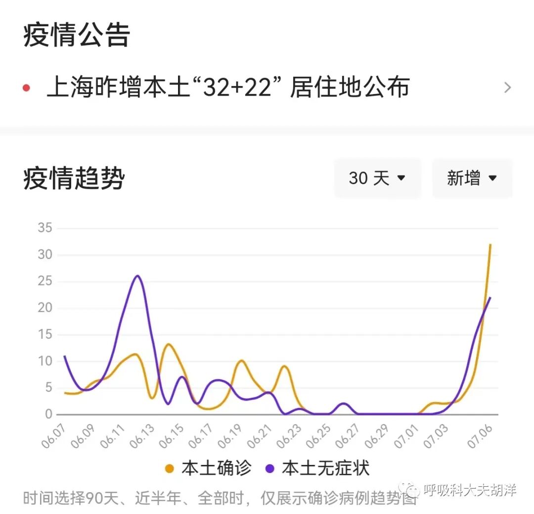 上海发布信息显示,上海昨天0-24时,新增本土新冠肺炎确诊病例32例,新增无症状感染者22例,疫情骤然升温,新增病例多来源于KTV疫情人员及其密接人员,从上海疫情曲线图上,6月28日期病例零增加持续5天之后疫情迅速升温,且上升速度较快,需警惕疫情反弹,影响社会运行。