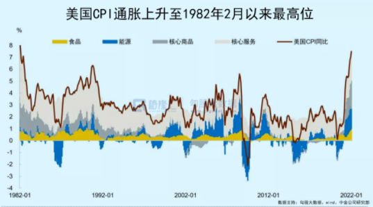 据美国今年1月数据,CPI环比上涨0.6%、同比上涨7.5%,通胀率持续刷新近40年新高。食品、服装、交通和医疗保健等生活成本继续上涨,连麦当劳都在2021年将菜单价格提高了6%。