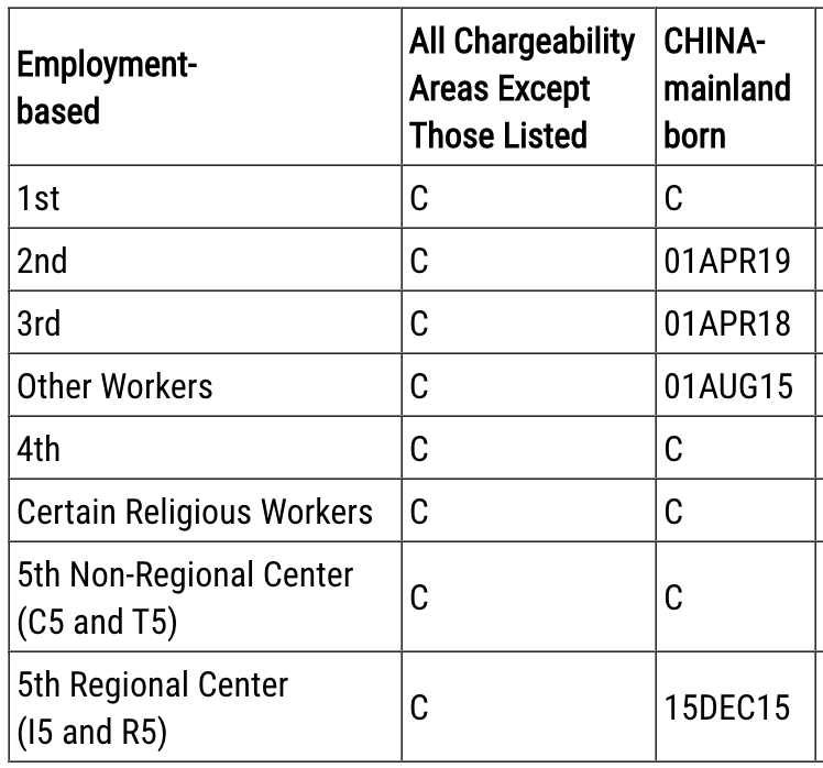 解释一下,表A是指有签证名额的排期,如果你的排期日期早于表A,那就代表有一张绿卡名额可以发放给你。