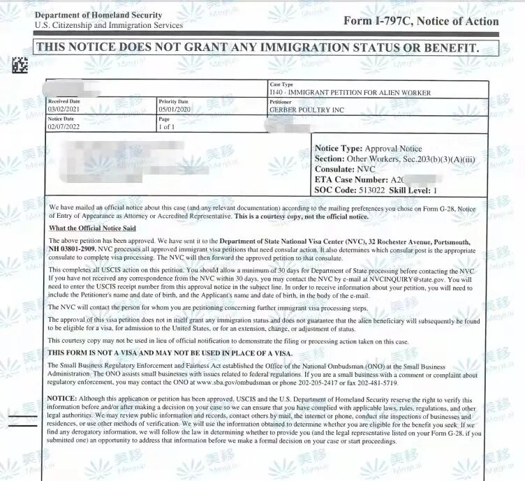 2021年1月,客户的劳工卡获批,顺利进入I-140移民申请。