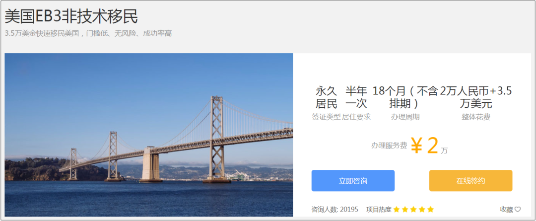 EW3项目是现在移民美国门槛最低的项目,对申请人没有学历、工作经验、语言等要求,只要获得绿卡之后,到美国从事一年的蓝领工作就可以顺利移民美国。