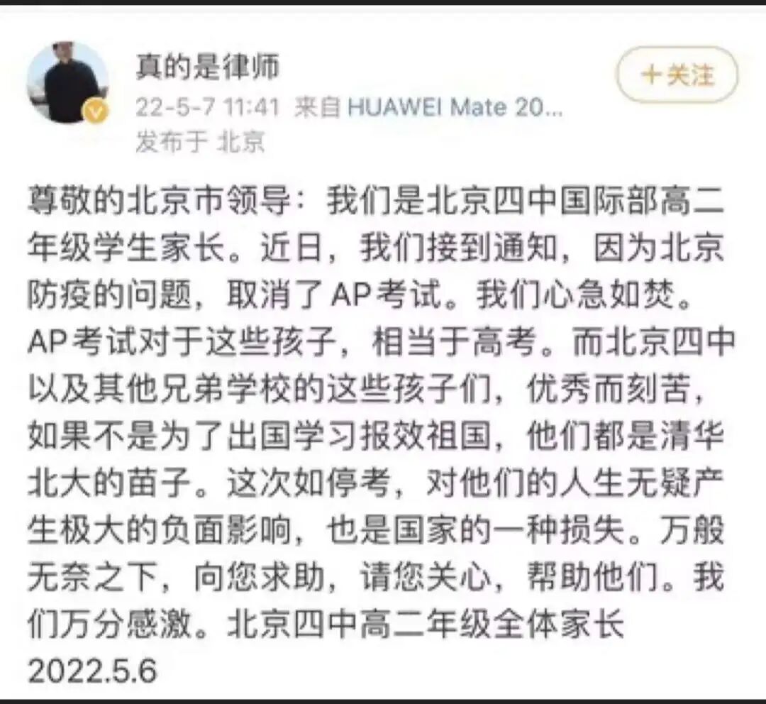 4月底,北京、上海、苏州等国内9个城市的AP考试被官宣取消。