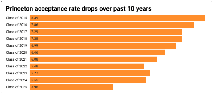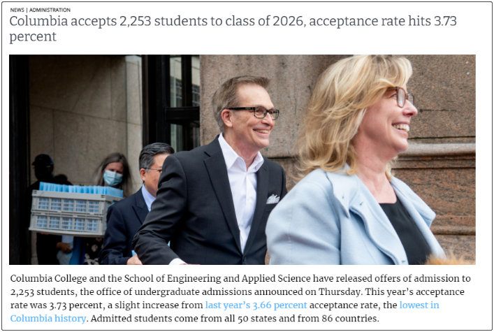 最终普林斯顿录取了1498名学生,录取率为3.98%(去年5.55%),又是为历史低位。