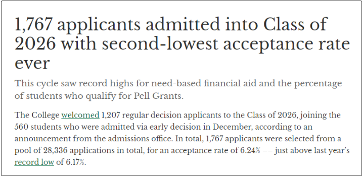 https://www.thedartmouth.com/article/2022/04/1767-applicants-admitted-into-class-of-2026-with-second-lowest-acceptance-rate-ever