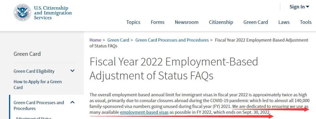 “在2022财年结束时,我们致力于确保使用尽可能多的基于就业的职业绿卡。”