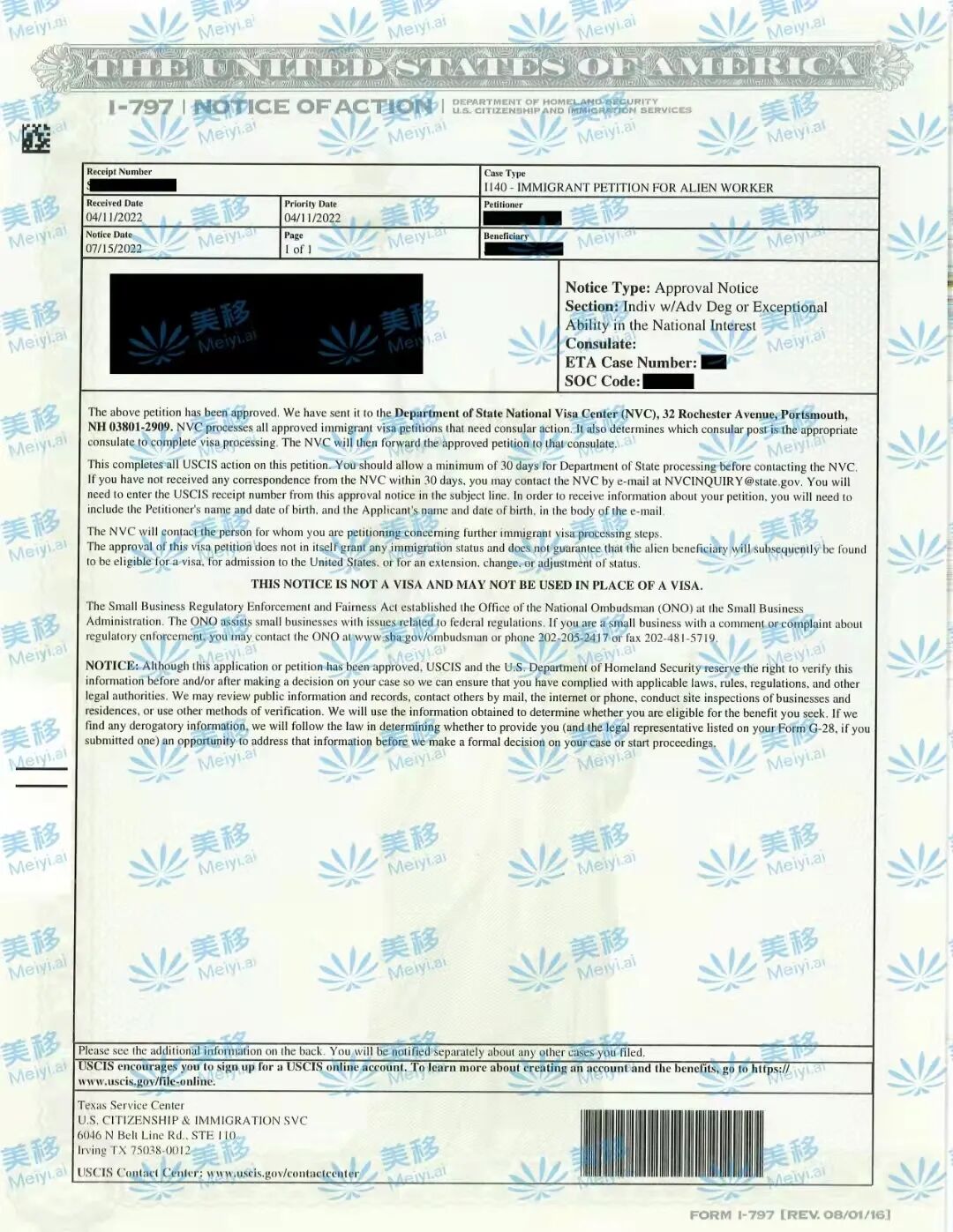 这一期我们要分享的是美国EB-2 NIW移民案例。本案的客户于2022年7月成功获批。