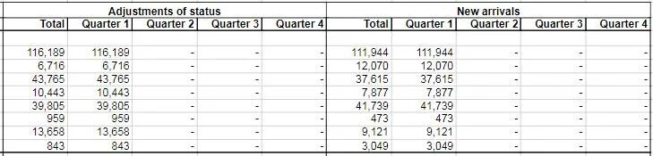 对报告期间的数据进行分解,可以看出近期美国移民的总体情况。