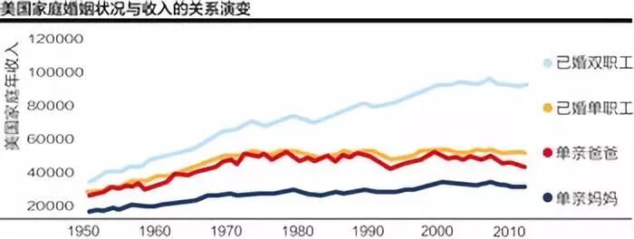 另外,社会调查表明高教育妇女的就业率最高,精英教育产品更是如此,所以大学毕业生结婚组成的双职工家庭收入远超低教育家庭,无论后者是双职工还是单亲。