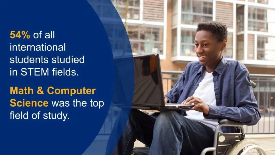 从国际生入读的专业来看,有54%的国际生选择入读STEM专业。