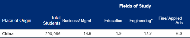 排名第三的是商科与管理类,约占中国国际学生总人数的14.6%。