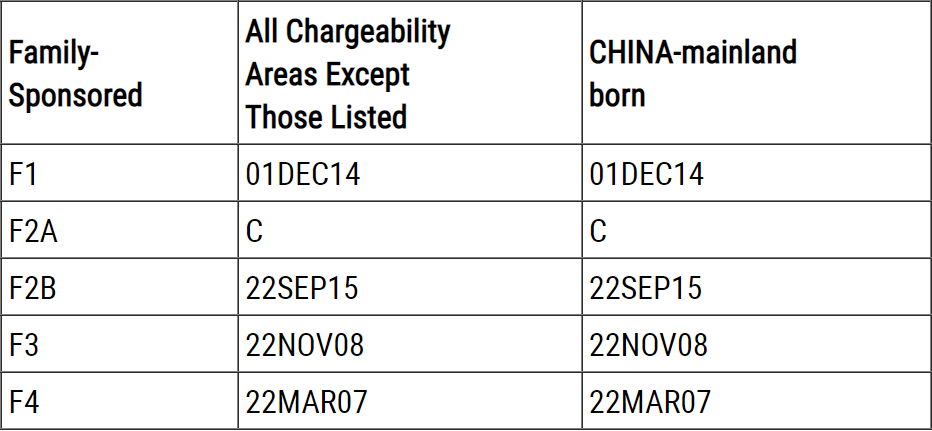 根据亲属移民排期表B,对于中国大陆出生的申请人来说: