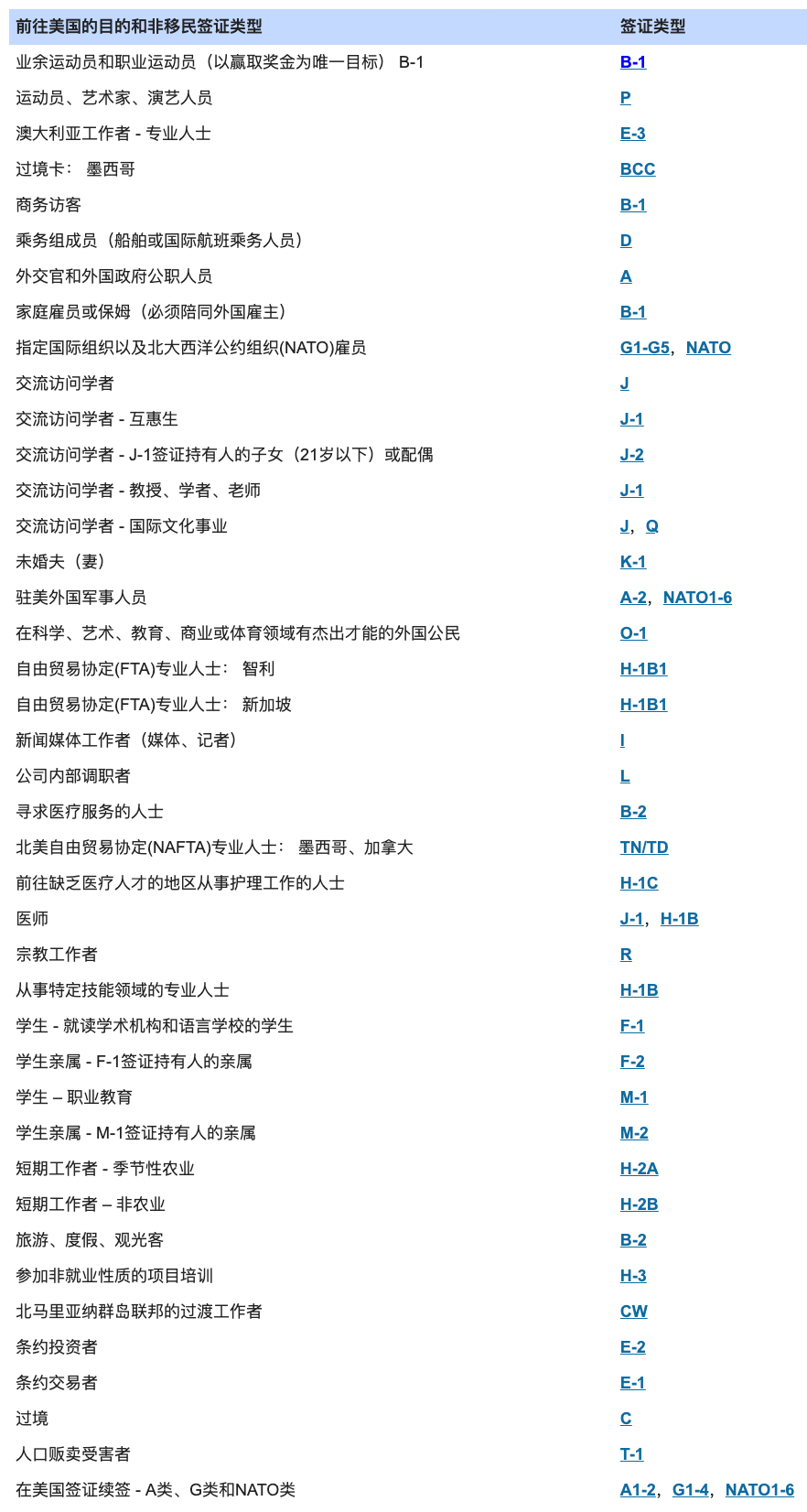 下图展示的是所有受这次暂停签证服务影响的完整的非移民类签证列表: