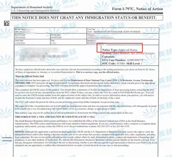 本期我们要分享的是美国EB3非技术移民案例,本案的客户在2021年11月收到美国移民局批准函。