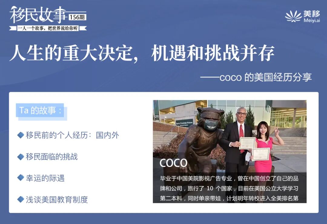 我是coco,本科是在中国美术学院读的,学的是影视广告专业。毕业后,我并没有从事相关的工作。没有移民之前,我主要在国内经营生意。
