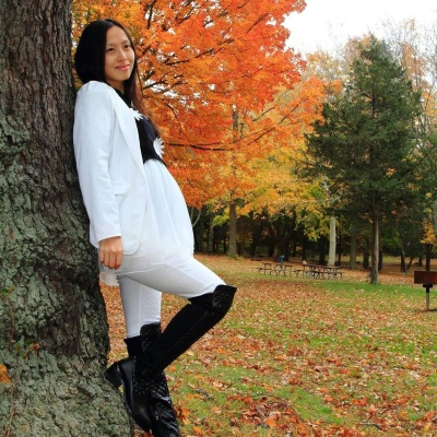 这张照片是 2015年拍的。那个时候是纽约的秋天,枫叶很漂亮。在入职的时候,我怀上了哥哥(第一胎),三年之后怀上了妹妹。