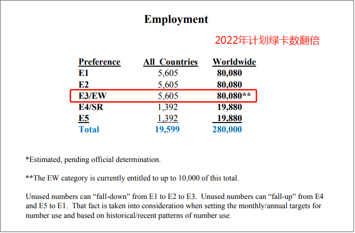 EW3(EB3非技术移民)计划绿卡数也由1万张增长到2万张,对比早前的5000张,可以说利好是非常明显的。