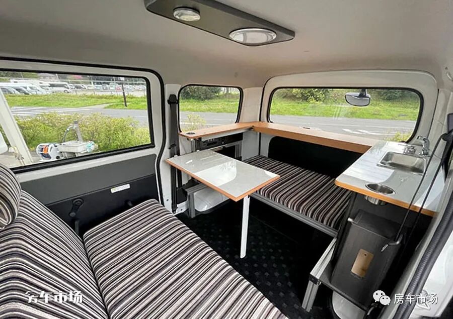 底盘来自丰田莱特艾斯(Liteace),有的车友喜欢叫它丰田小霸王,搭载一台1.5L排量汽油发动机,匹配AT自动挡变速箱,驱动形式为两驱2WD前置后驱,荷载人数:5人,可以睡下2人。