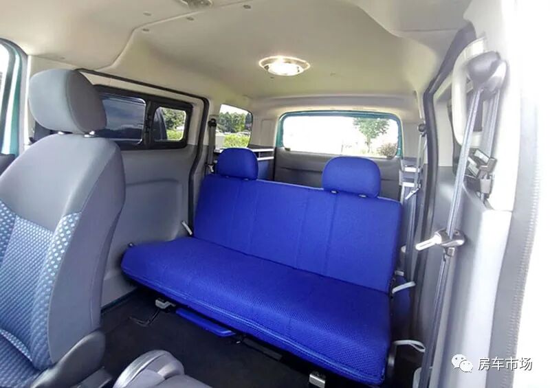 休息的时候可以把座椅放倒,后部临时座椅放倒,拼成一张双人大床,尺寸为2*1.3米,能睡下两人,把两侧的隐私窗户关上,前后窗帘拉好,随时可以休息。