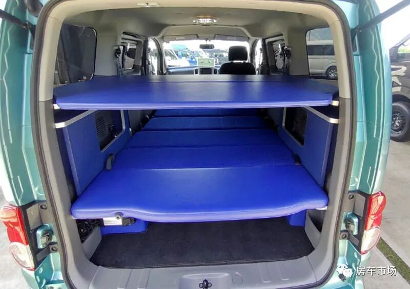 这台三菱得利卡改装后,设置了上下两张床位,能睡下4人,配有简单的电能,其他配置少,只能当一台床车使用,适合一家人短途郊游。