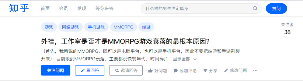 首先,外挂、工作室对于用户体验的破坏性是不言而喻的,一个外挂与工作室泛滥的游戏必然会失去公平的环境与良性的氛围,尤其是依赖于用户生态与市场公平的MMORPG。但这只是导致MMO日渐衰落的一小部分内因,我认为真正使其走入下坡路的更多的是外部因素。