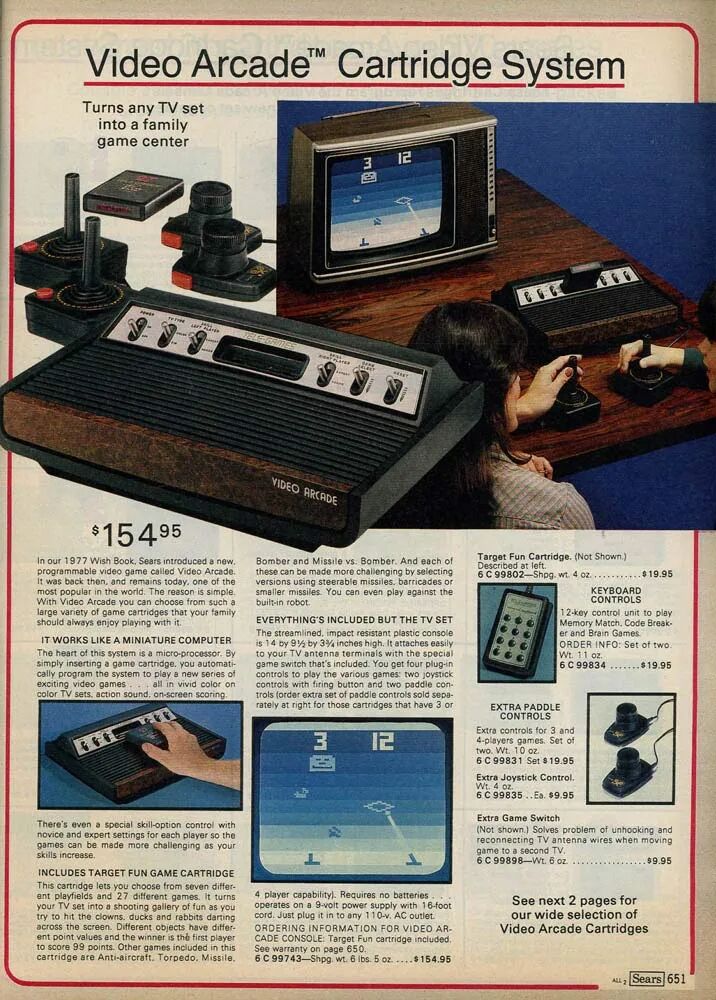 1977年,一家名叫“雅达利”(ATARI)的美国电脑公司带着他们的游戏机来到世人面前,这款名叫“Atari 2600”的家用游戏机后来成为了游戏机史上开山立派的宗师。雅达利在 Atari 2600上向众人演示了如何游玩《pong》,这是一款模拟打乒乓球的游戏,它的展现方式非常简单:只是两条线中间有一个运动的光点,但却受到了当时人们热情的追捧。