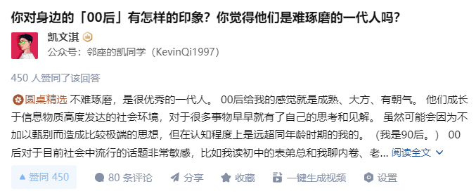 其实每一代人都不乏优秀者,“XX后”归根结底只是一个年龄标签,不同年龄层的人们固然会带有独特的年代烙印,但优秀的思想和人生态度是可以贯通时代的。