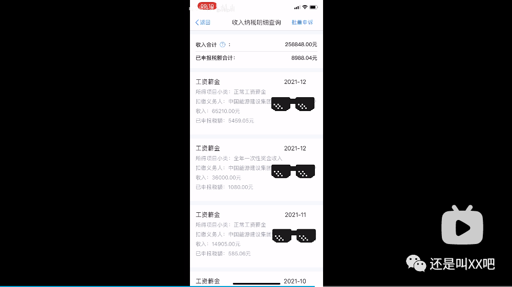 两个视频都很简单,一个是播放ppt介绍电力设计院概况的视频,另一个是手机上个税APP的录屏视频,展示了他2019-2021年三年的税前收入,分别是15万、20万、25万,大概这个数,应该正好对应的是新员工入职的前三年收入。