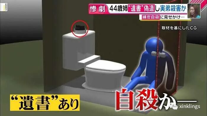 四月底圣光家周围有人分发传单,指控圣光的妻子和圣光的合伙人外遇,两人勾结杀害圣光以得到对建筑公司的控制权。圣光家的车子被人喷了油漆。警方通过周边的监控摄像头发现传播谣言及搞破坏的居然是圣光的姐姐朱美。警方搜查朱美家,找到残余的传单和喷漆,朱美的电脑里有圣光遗嘱的草稿,还有与圣光体内药物成分一致的安眠药。警方推测朱美在给母亲和弟弟的抹茶里下了安眠药,两人昏睡过去,朱美将弟弟圣光拖进浴室,点燃炭盆,在门框上喷了粘合剂后,将打火机和粘合剂的容器带走,关上门,让圣光在密闭的浴室中因一氧化碳中毒身亡。