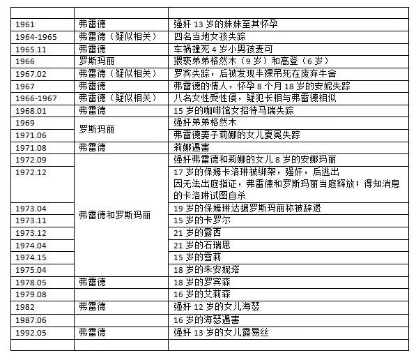 1978年,弗雷德家的房客罗宾森怀有弗雷德的孩子,同时罗斯玛丽也怀有身孕(女儿露易丝,1993年因遭弗雷德强奸引起警方对弗雷德和罗斯玛丽调查)。