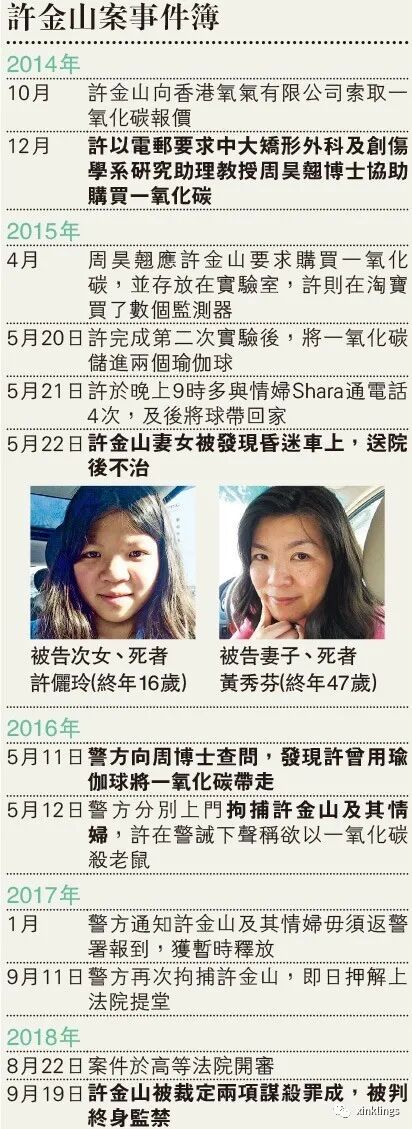 2018年检方控许金山杀人一案开庭。检方认为许金山为了情人李泳怡想要离婚脱离家庭,只是妻子黄秀芬拒绝他的要求。许金山为了解决麻烦,并拿到夫妇共有的约3,000万元财产,策划了这起谋杀案。他的目标只有黄秀芬一人,事发当天,他在出门上班前,将注满一氧化碳的灰色瑜伽球放入妻子的黄色轿车后厢,又把气塞拔出。没想到下午二女儿许俪玲竟然和妻子一起进了车子,两人皆因一氧化碳泄漏而死。