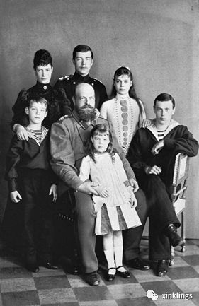 (全家福,后排站立者为尼古拉二世,亚历山大三世坐在正中)
