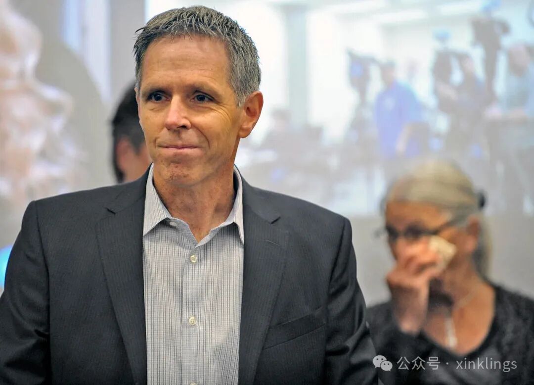 (约翰在判决结果出炉后作为被害人家属发言,背景里在擦眼泪的是杰的母亲蕾欧娜)