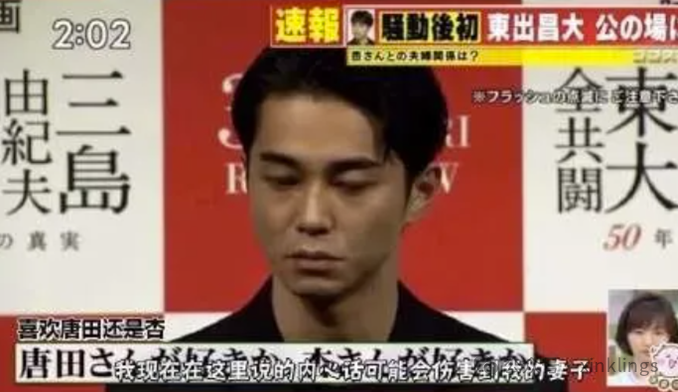 东出昌大通过经纪公司承认背叛婚姻,将所有过错都归咎于自己的不成熟,他表示会积极修复和杏的婚姻,还说两人没有离婚,只是暂时分居。没想到东出昌大在出席宣传活动时大言不惭说“已经得到最严厉的惩罚”。被问到更喜欢杏还是出轨对象唐田,他沉默许久后说:“非常抱歉,因为涉及到其她人,我现在把心中所想说出来的话会伤害妻子,所以无法回答。”