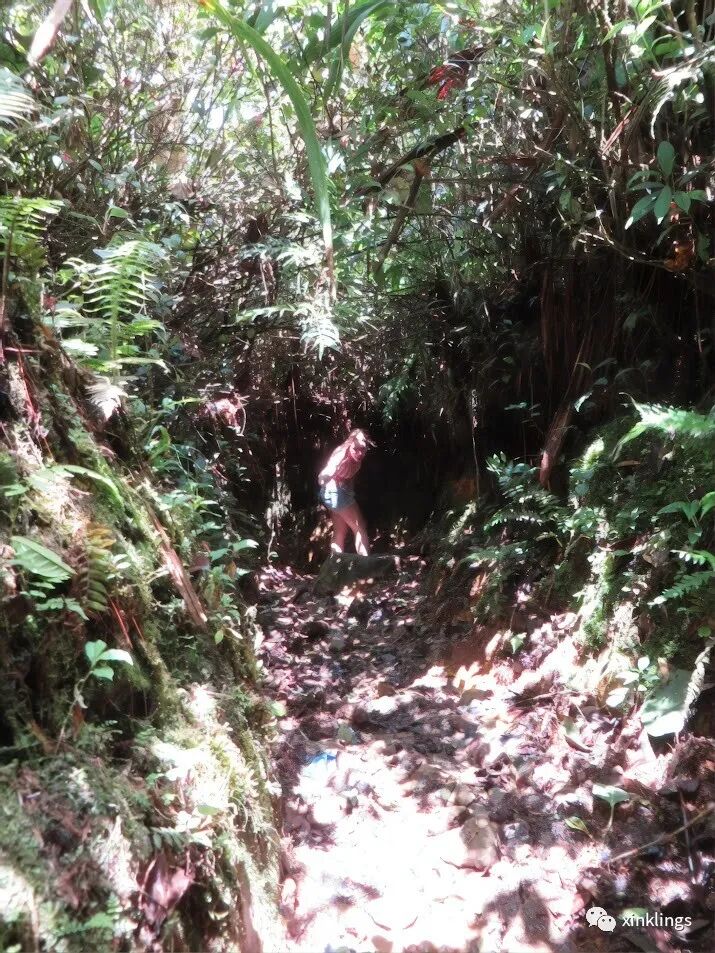 11时许栗山和克莉丝出发,她们边走边拍照,13时许顺利到了山顶(被称为Mirador,有瞭望台的意思,在那里周围雨林的风景一览无余)。海拔1,890米的山顶有让人们除非有导游带领需原路返回的警示。继续往前走,丛林里有一个瀑布,可是路况复杂,人们很容易迷路,旅行者几乎从不会走这条路线,原住民和当地居民为了抄近路,偶尔会从这里经过,可是他们会随身带着开山刀开路。不知什么原因,两个女孩儿没有下山,反而决定向北深入雨林。她们没有携带食物、帐篷、防水装备,其实根本不适合长时间徒步。当时已经13时,即使她俩只再往前走1小时就返回,回到步道起点也要傍晚了。