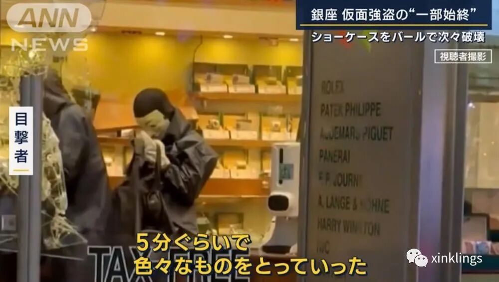 5月2日下午15:15,二男子在京都市中京区的名表店用锤子砸破手表展示柜,威胁店员,共抢走价值约7,000万日元(约合332万元人民币)的41块劳力士及其他品牌手表。