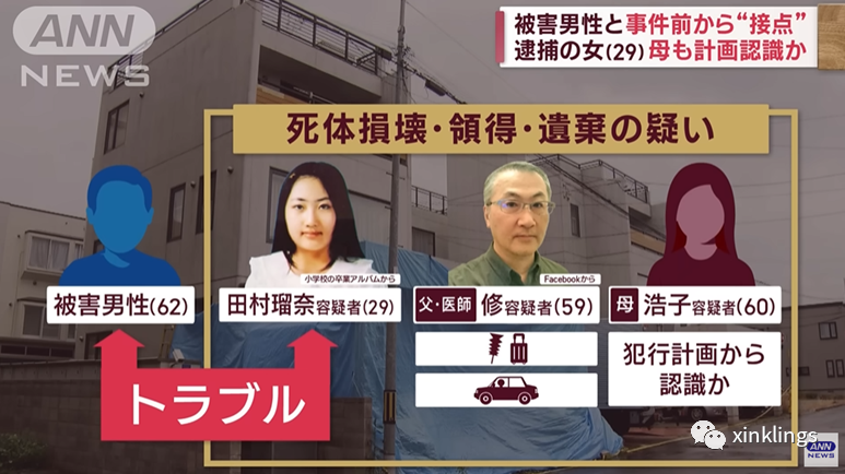 59岁的田村修是一名精神科医生,与60岁的妻子浩子以及29岁的独生女瑠奈住在一栋混凝土独栋别墅。警方很快锁定田村修从酒店接送的女子正是他的女儿田村瑠奈。