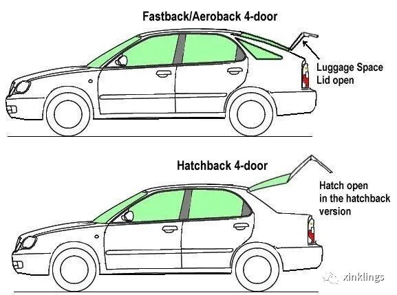 (普通车后盖与掀背车后盖比较,下图为掀背车)