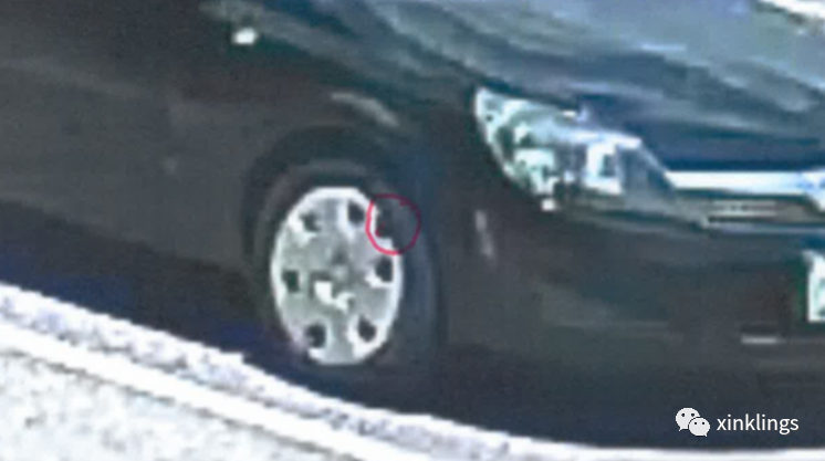 (探员得到轮圈细节后拍摄布伦特的车辆照片,其右前轮轮圈金属部分缺失)