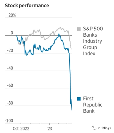 硅谷银行的倒闭是美国历史上第二大规模的银行倒闭事件,但潘多拉的盒子一旦打开,硅谷银行断不会是空前绝后的个例。第一共和银行已向联邦住宅贷款银行借款$100亿, 向美联储借款$1,090亿,将接受摩根大通$700亿贷款,此外包括摩根大通在内的11家大银行也已向第一共和银行提供总计$300亿美元120天无抵押贷款。第一共和银行的储户绝大部分都是企业用户,他们同时取现对银行的影响比个人储户要大得多,第一共和银行毫无惊喜地也在过去数年里购买了大量低息长期债券。流动资金的问题外,第一共和银行的高管在两个月前共出售$1,180万公司股票,股民对公司经营管理的评价和后续发展的预期如股价所示。