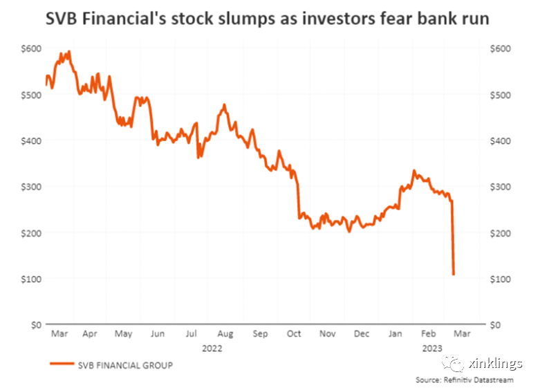 (硅谷银行母公司的股价在3月8日剧烈下跌)