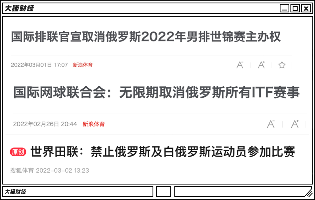 把这些制裁推到极致的,是体育界,平常这些人挂在嘴边的是“体育与政治无关”、“足球让战争走开”,不过这次,大一点的体育单项联合会都开启双标模式,都对俄罗斯提出了制裁。